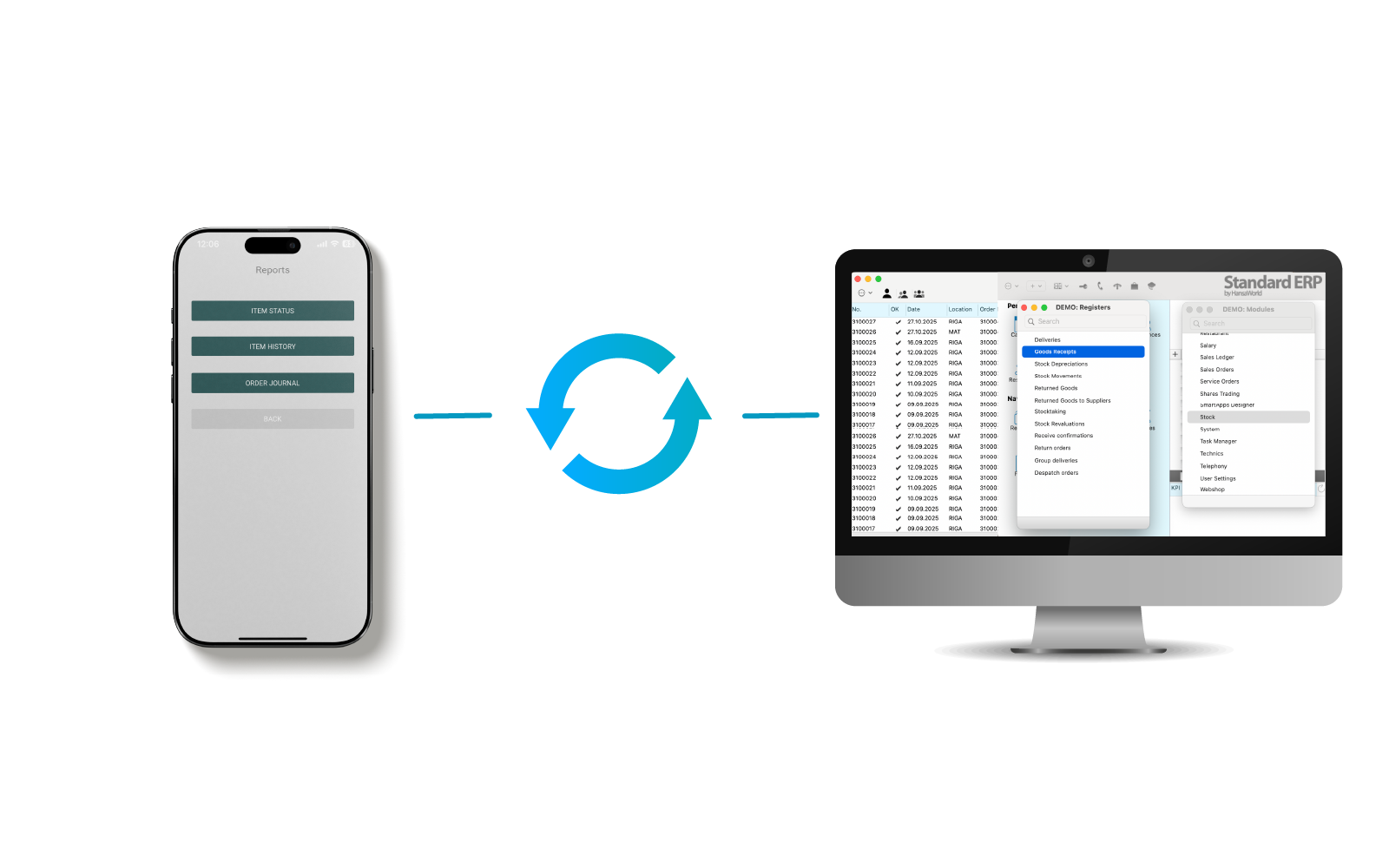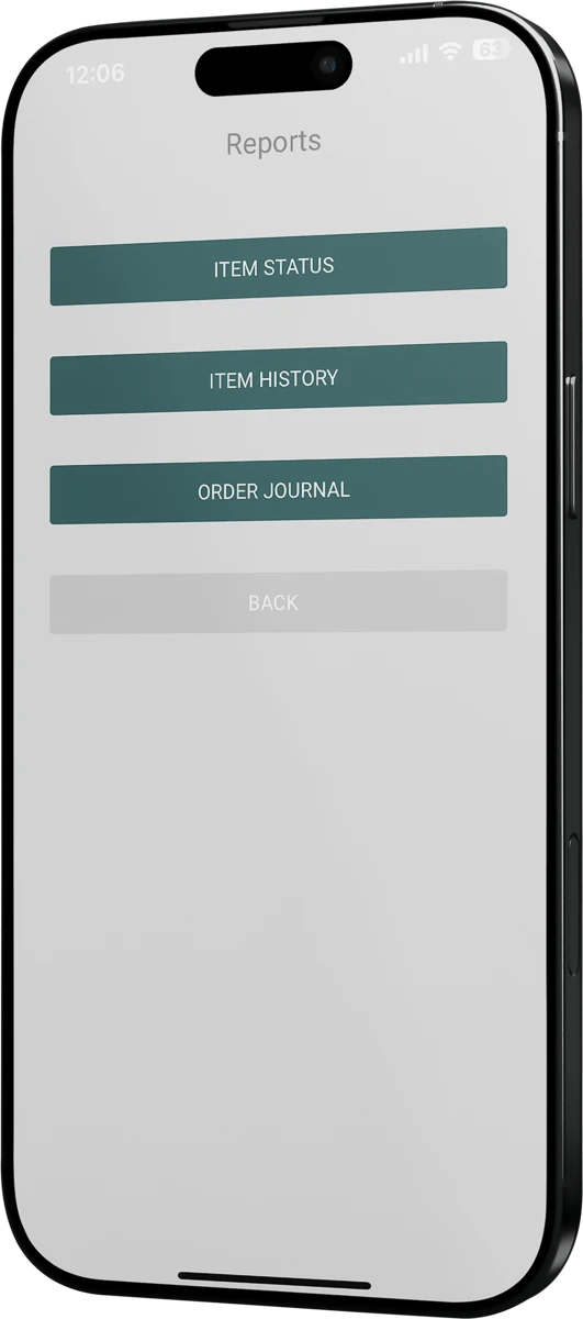 Access detailed inventory and order reports directly from your mobile device. Check item status, history, and movements with real-time data from your ERP.