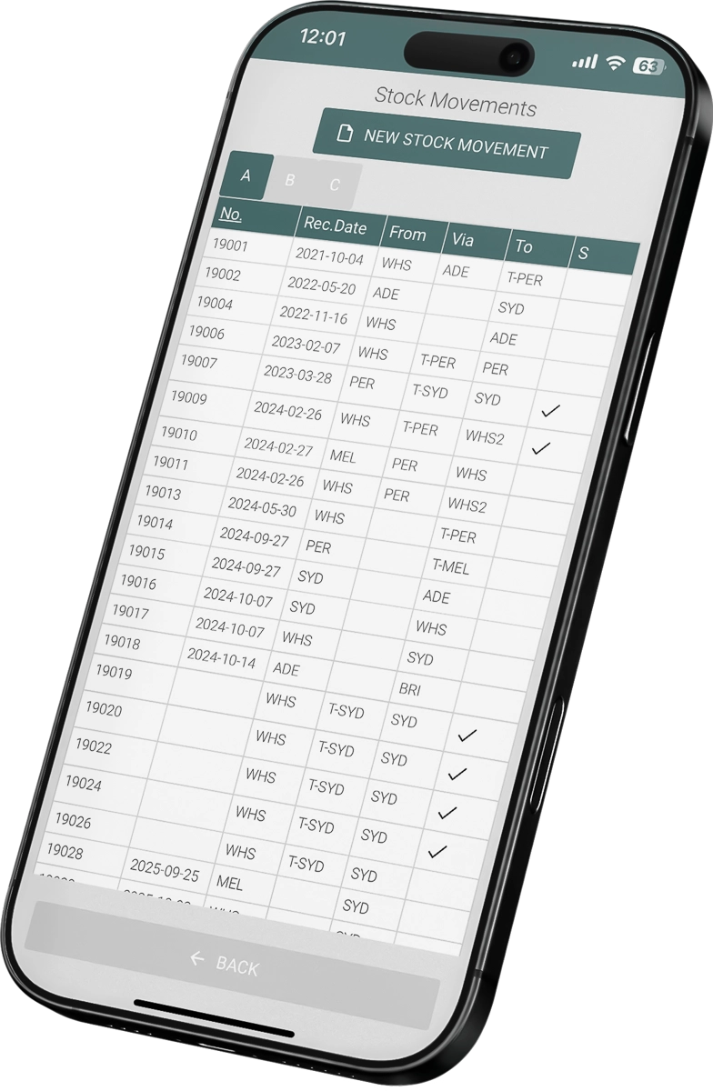 Prepare new stock movement documents directly from your phone while working in the warehouse — no desktop required.